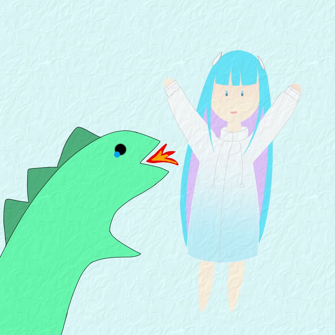 #somu_art 恐竜を威嚇するsomuniaちゃん