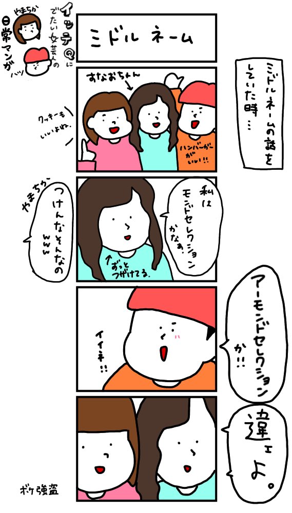 4 14 ちなみにわたしのミドルネームは米俵にしてくれと言われました。 #てづくり4コマ #漫画が読めるハッシュタグ 女芸人てづくりパンの実録四コマ漫画です 22/02/03 21:24