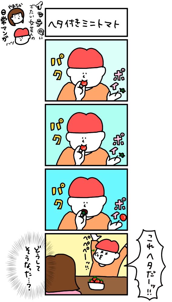 1 9 今ハマってて、毎日20個くらい食べてるから仕方ないのかもしれません🍅 #てづくり4コマ #漫画が読めるハッシュタグ 女芸人てづくりパンの日常実録漫画です 22/02/20 22:14