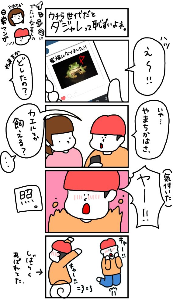 2 11 私たちの世代はかなり恥ずかしがるか満を持して言ってのけるかの2通りだと思います #てづくり4コマ #漫画が読めるハッシュタグ 女芸人てづくりパンの日常実録漫画です 22/03/08 19:06