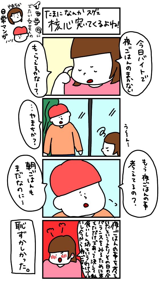 2 10 盲点!みたいな顔してました笑 #てづくり4コマ #漫画が読めるハッシュタグ 女芸人てづくりパンの日常実録漫画です 22/02/10 21:17