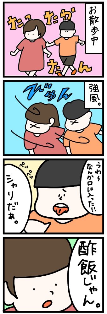 『強風あるある』 🍣🍣🍣🍣🍣🍣 #てづくり4コマ #漫画が読めるハッシュタグ 女芸人てづくりパンの日常実録漫画です🍞