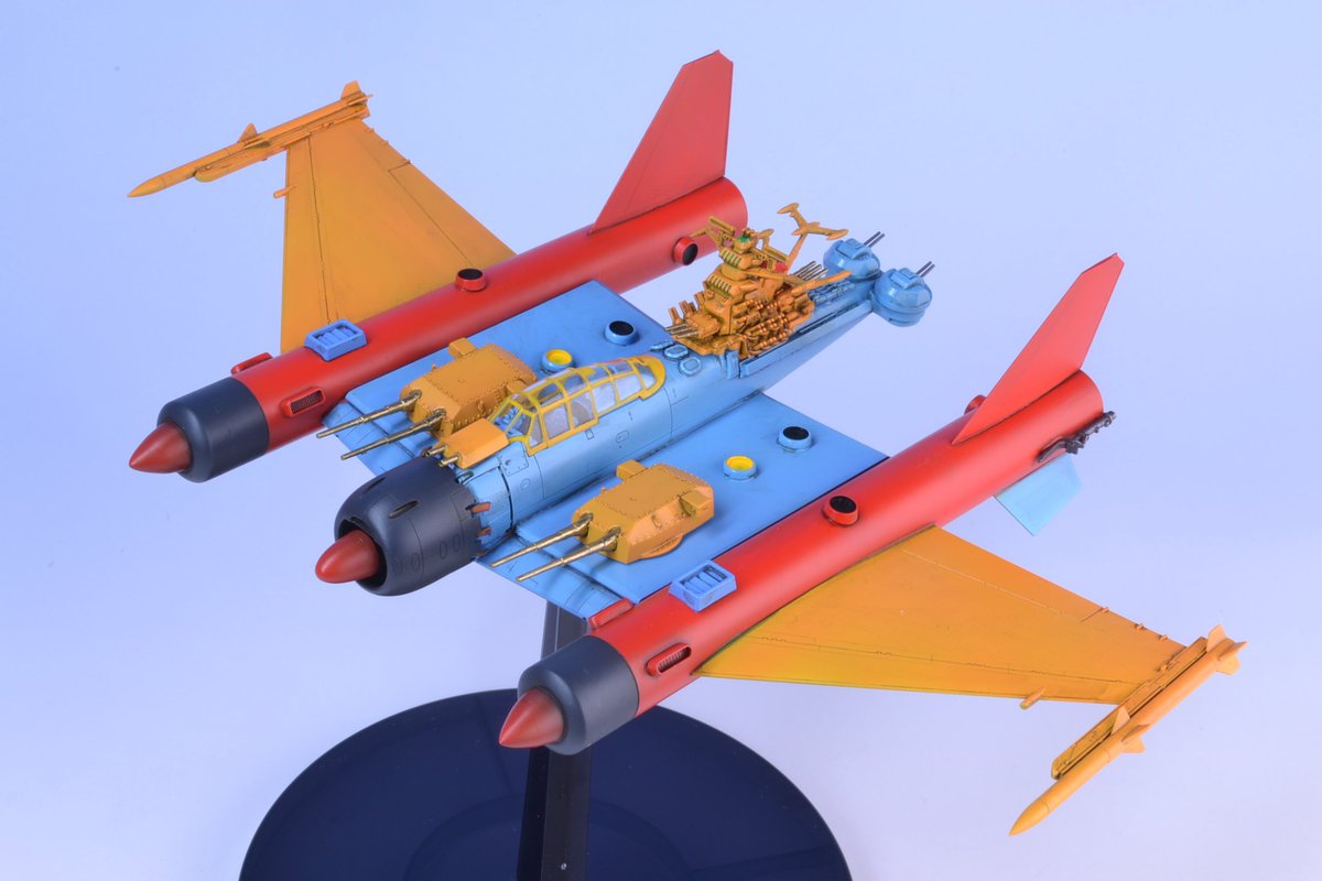 旧キットでは無いですがスケビ「SAコン2017」に「アオシマ・合体ゼロセンヤマト」のオマージュ作品を投稿しました。アオシマブルーに拘ったので、カラー掲載して欲しかったなぁ~。#SAコン2017 #アオシマ合体