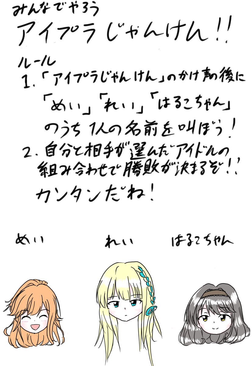 12 43 アイドリープライドVENUS STAGE2022”奇跡”まであと2日! ということでライブ前の時間潰しに使えるゲーム「アイプラじゃんけん」を考案しました。 #アイプラ_FA #アイプラ 22/02/17 00:43