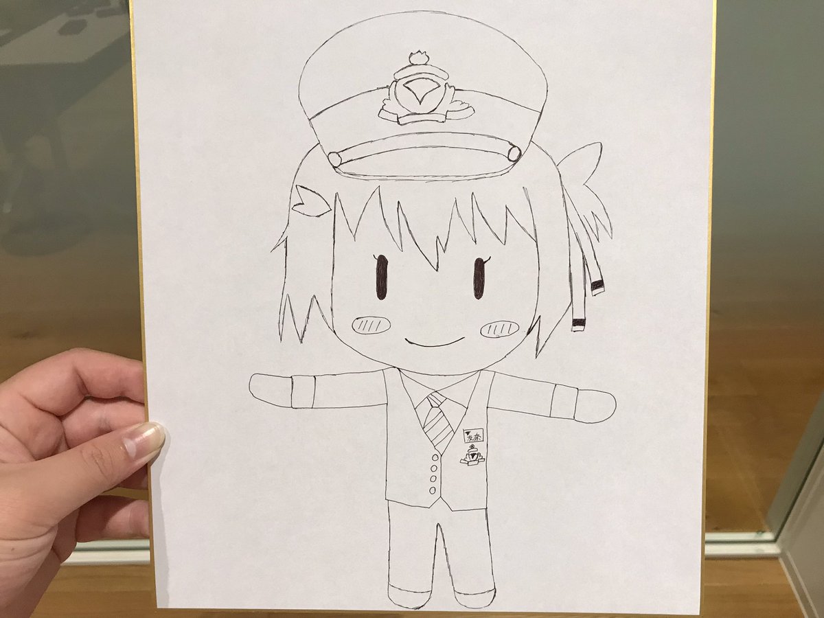 最後に6枚目完成! 結城友奈ちゃんがちっちゃくなって、 ぬいぐるみ化しました! 衣装は東京都営地下鉄駅員さんの制服です! 結城友奈ちゃん「私、結城友奈、都営地下鉄駅員になりました!どう?どう?似合う?えへへ💕嬉しいな💕」 #香川お絵描きオフ会