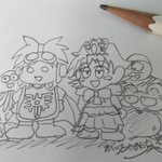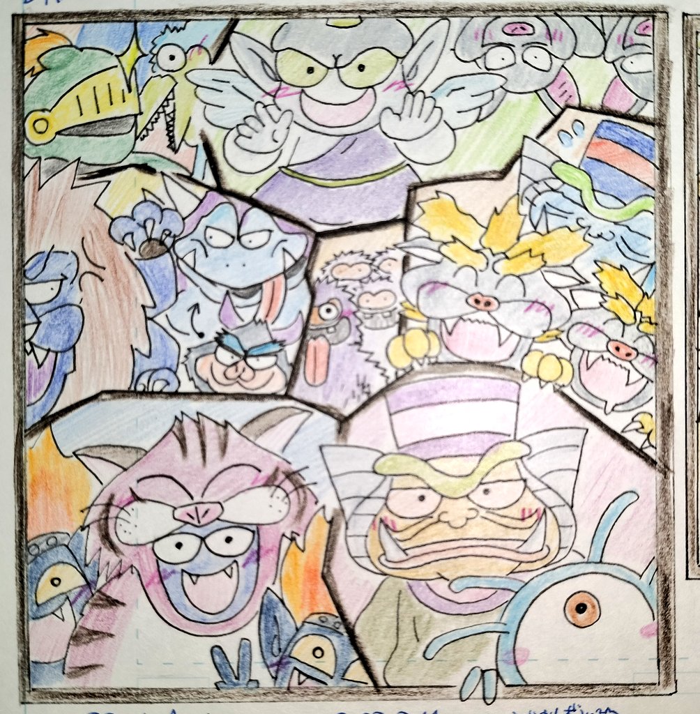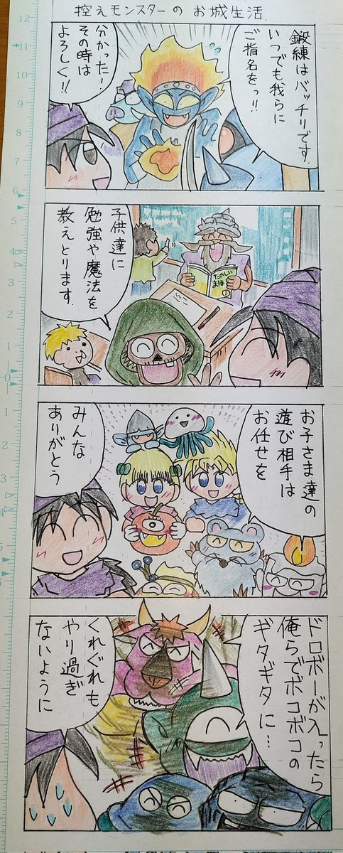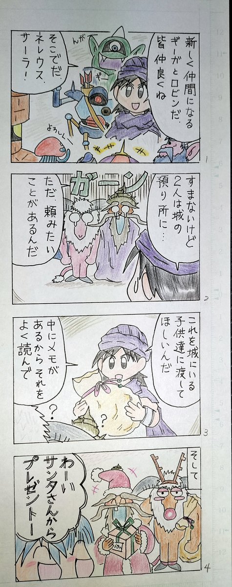 #今年も残りわずかなのでお気に入りの4枚を貼る スーパーマリオブラ●ーズ風のドラクエ2イラストはお気に入り🐭 あとは集合絵というか、ゴチャゴチャ詰め合わせ的な、しかもモンスターが好きなので Ⅲは元ネタは紅の豚の1シーンからです🐷🛩