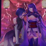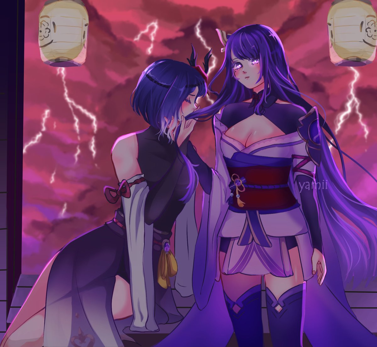 My friends did a ganqing cosplay and sent me photos for refs 💜 #ganqing #ganqingfanart #Ganyu #Keqing #ganyuxkeqing