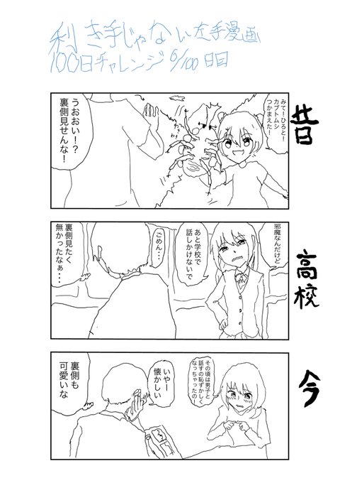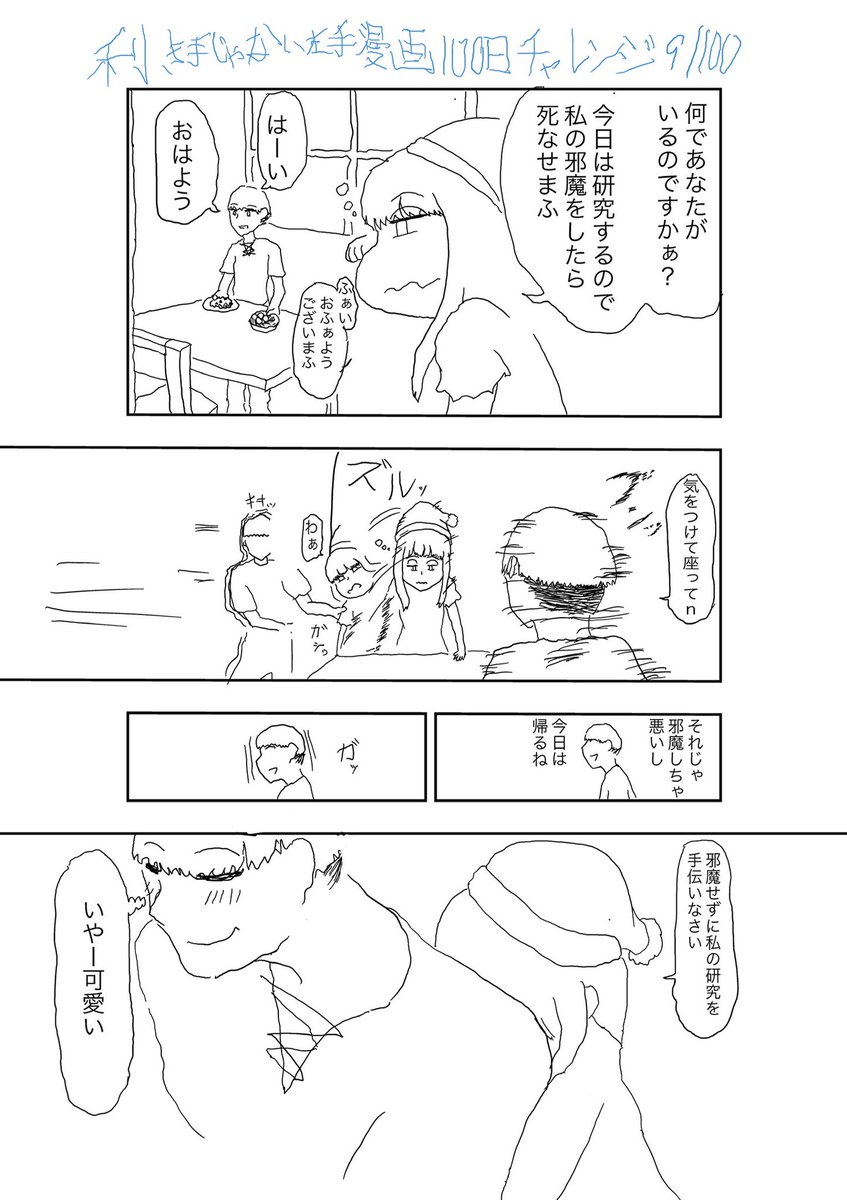 #100日チャレンジ 9日目、利き手じゃない左手で漫画を100日毎日描くぞ! 絵は左利きが有利というのを検証。 やっと9時に投稿できたっす。でもちょっとズルしてて、右手でネームしちゃった。次は一発がきします。