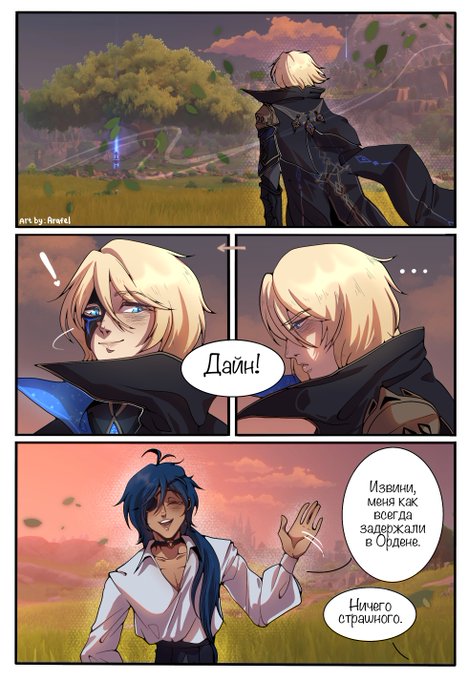 "Что тебя связывает с Кэйей?" (What connects you with Kaeya?) Eng: Previously, we were bound by memories, feelings... However... Now, it seems, there is nothing. #GenshinImpact #genshinimpactfanart #Dainkae #dainsleif #Kaeya