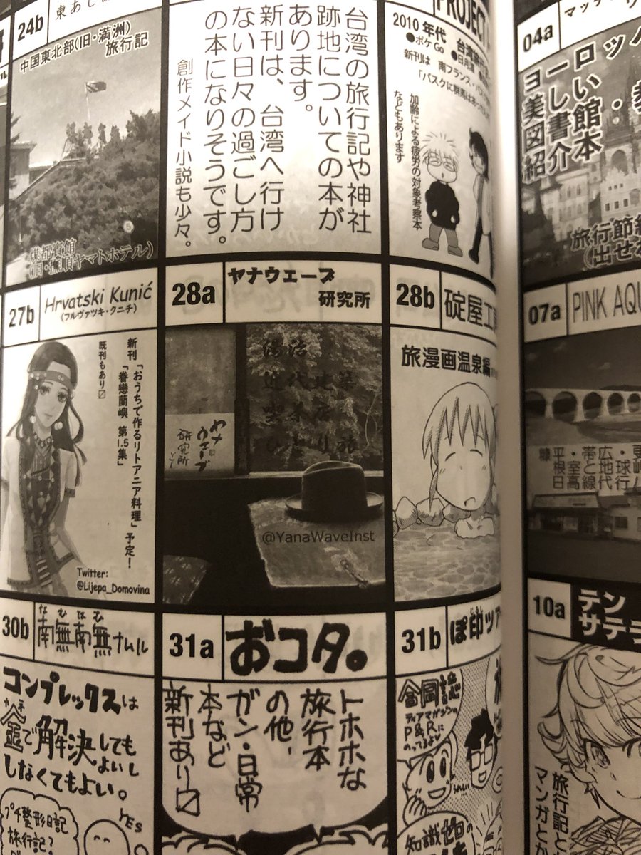 ヤナウェーブ研究所、C100設営完了。 東4ホール、ロ28a、なぜか誕席です。 ミリ島の片隅で旅本売ってます。 たまにゲバヘル被ってたりしますがお気軽にどうぞ。 #ヤナウェーブ研究所同人部 #C100