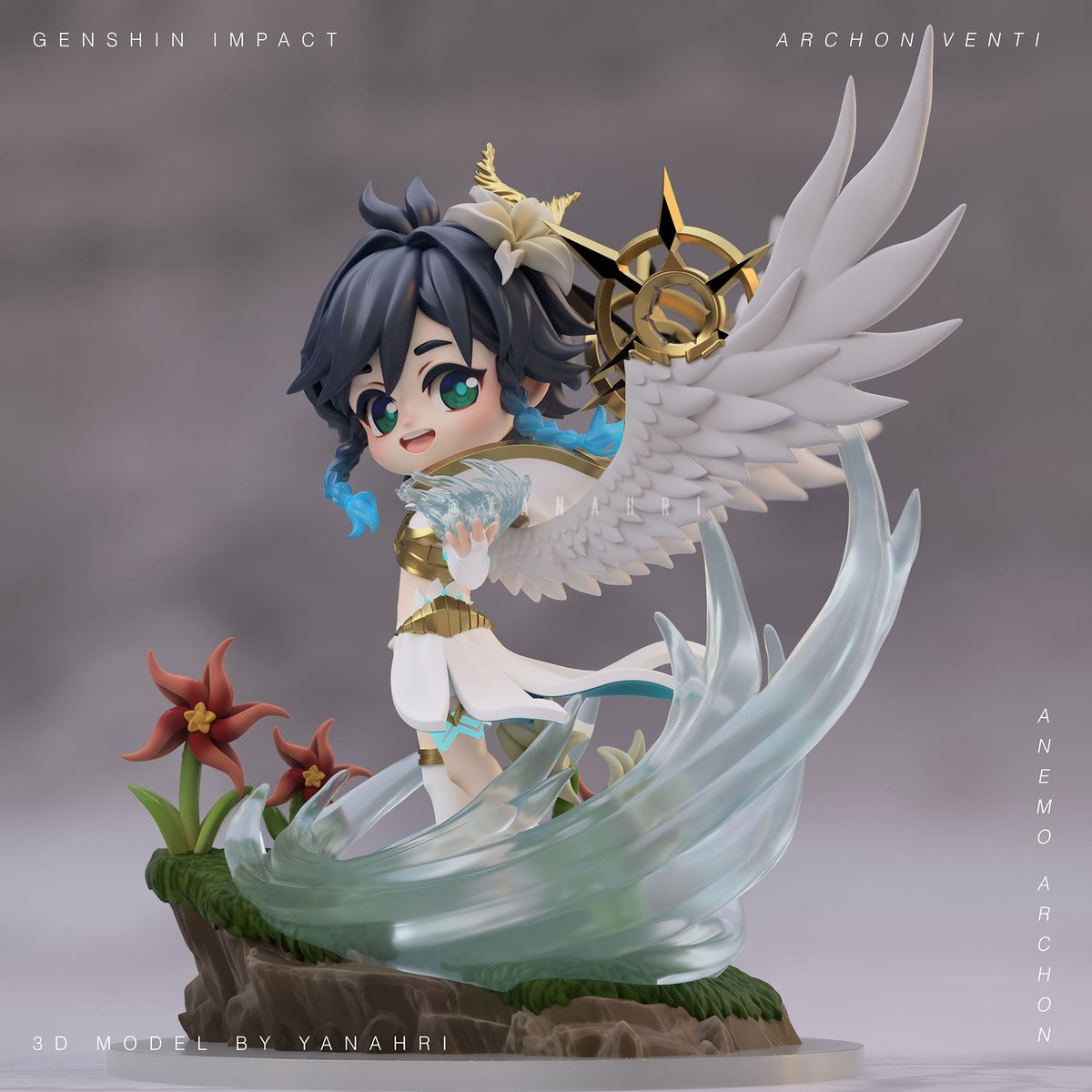 🌸Fan-art Commission of Archon Venti. He'll be available for 3D Printing. Please do look forward, It'll be for sale at my CGTrader. ;u; ✨More Renders: artstation.com/artwork/G82Yk1 #GenshinImpact #GenshinImpactFanart #Venti #Mihoyo #3Dprint #Toy #Fanart #Chibi #Animefigure