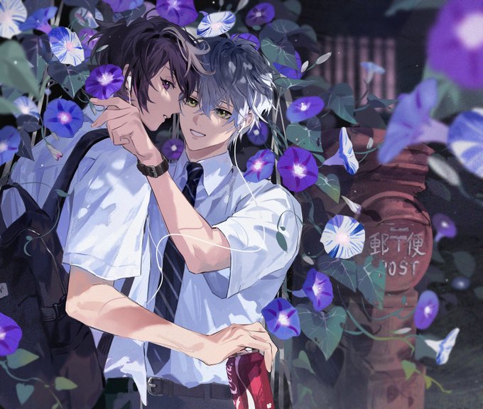 #shuike 牵牛花很像他们的颜色💜💙,其实画了短发的💜但是被遮住了发尾😂