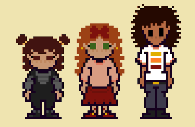 1 6 I drew @smubiess's AUs Afton Kids because their designs are stuck in my brain! #fnaf #fnaffanart #pixelartist #pixelart 23/01/15 04:39