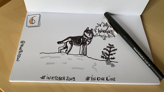 Un #Husky enroué pour le 6ème jour de #Inktober2019 !! #inktober19 #InOneLine Cc #visualTeam #CanopeDTBFC @inktober