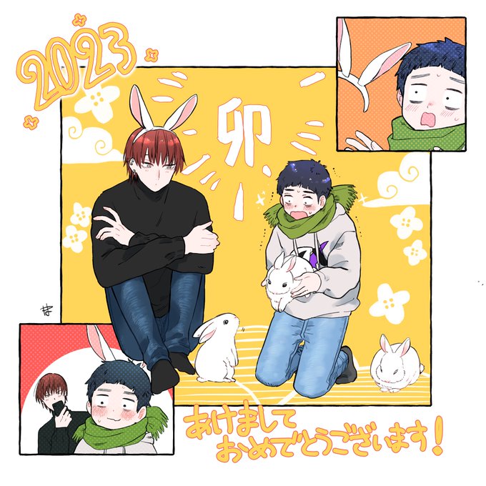 12 75 2023🐇卯🐇 あけましておめでとうございます! 今年こそ…!描くぞー! #創作BL 23/01/02 11:19