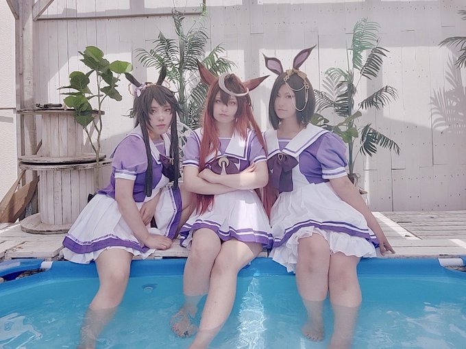 7 23 ※コスプレ 初ウマ娘併せしてきたーーっ₍₍⁽⁽🐎₎₎⁾女子のポージングたくさん教えてもらってほんの少しレベルアップした気持ち\(◡̈)/ 夏らしい事してなかったからプール楽しかったな!はしゃいで楽しそうな私も一緒に添えときます🙌 22/07/18 22:09