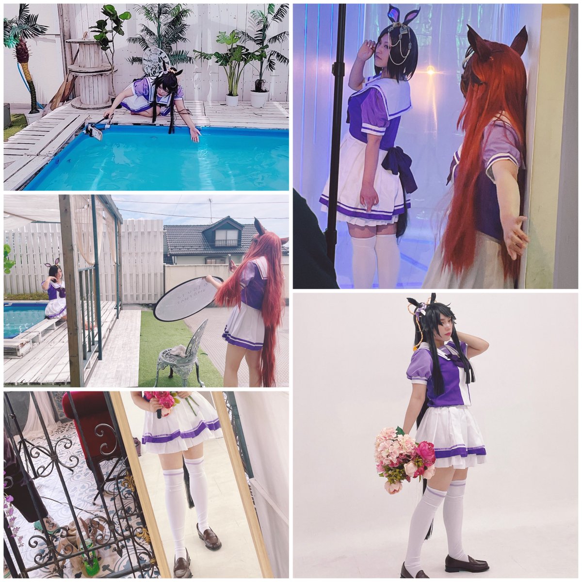 ※コスプレ 初ウマ娘併せしてきたーーっ₍₍⁽⁽🐎₎₎⁾女子のポージングたくさん教えてもらってほんの少しレベルアップした気持ち\(◡̈)/ 夏らしい事してなかったからプール楽しかったな!はしゃいで楽しそうな私も一緒に添えときます🙌