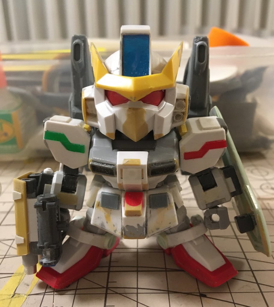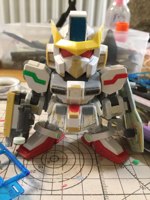 プロペラントタンクを増設したり、 耳の後ろにディテール足したり。 バックパックに もう一捻り欲しいなぁ #ガンプラ #BB戦士ワールド #スターゲイザーガンダム #デュエルガンダム #ブレイズザクウィザード