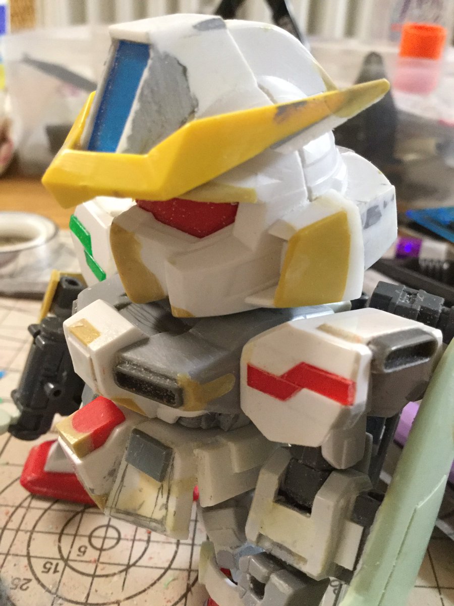 ジムドミナンスの ダブルビームライフルと イングラムのシールドの 中間的な武装を作成。 あとはひたすら ヤスリがけと ディテールアップやな。 しらんけど #ガンプラ #BB戦士ワールド #スターゲイザーガンダム