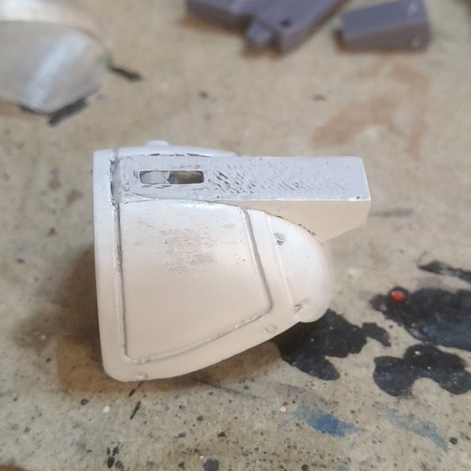 #GWモデリングT製作会2023 #進捗 #イングラム その3 おでこのC面無くしました。 これこれ。 肩がハの字に開くように可動範囲調整 写真右肩か加工後 勢いで一号機の分もパーツをプリント。肩下端をちょっと小さく #パトレイバー #パトレイバー模型部 #プラモデル