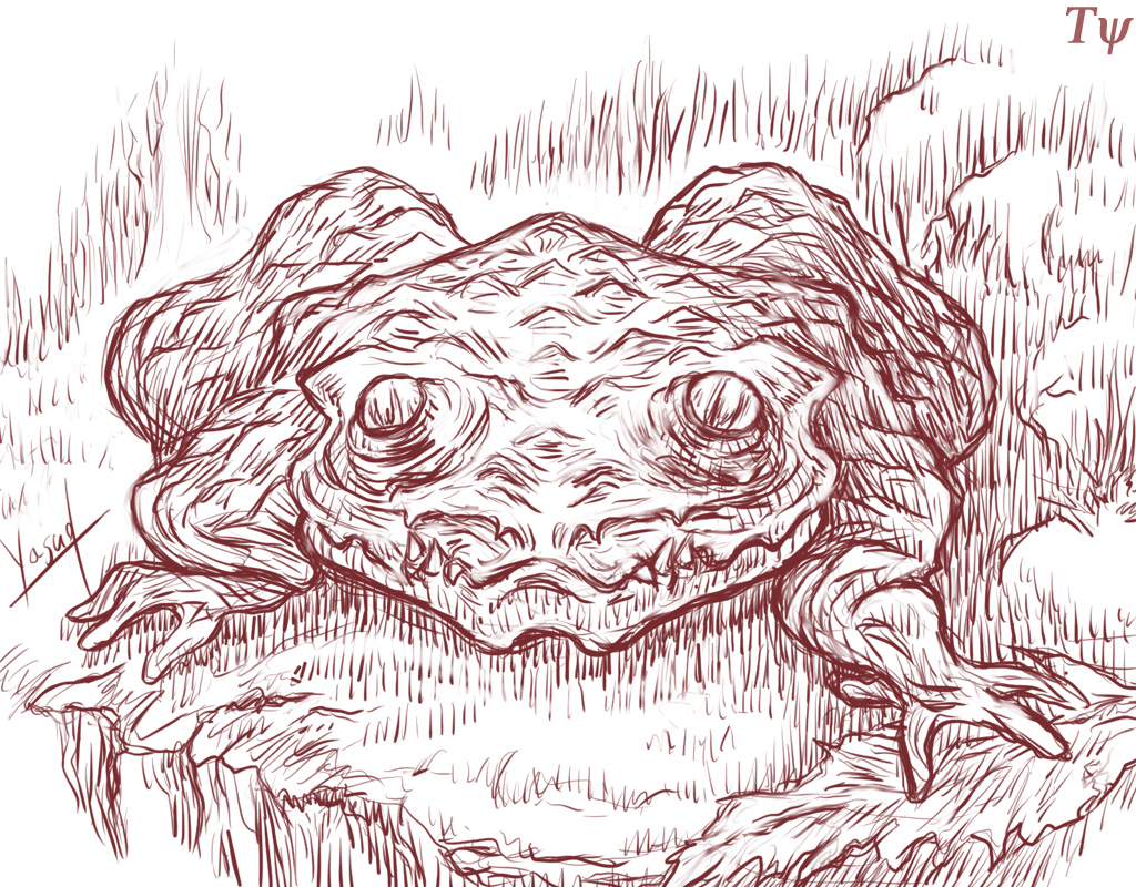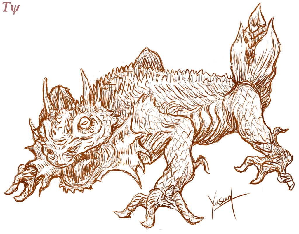 生きている時のミツユビオニトカゲの初スケッチ。 動作はのろく、カラダは大きいが目がよく見えないそうですが、一応「オニ」という要素は入れてみました。 #ドルアーガの塔 #悪魔に魅せられし者