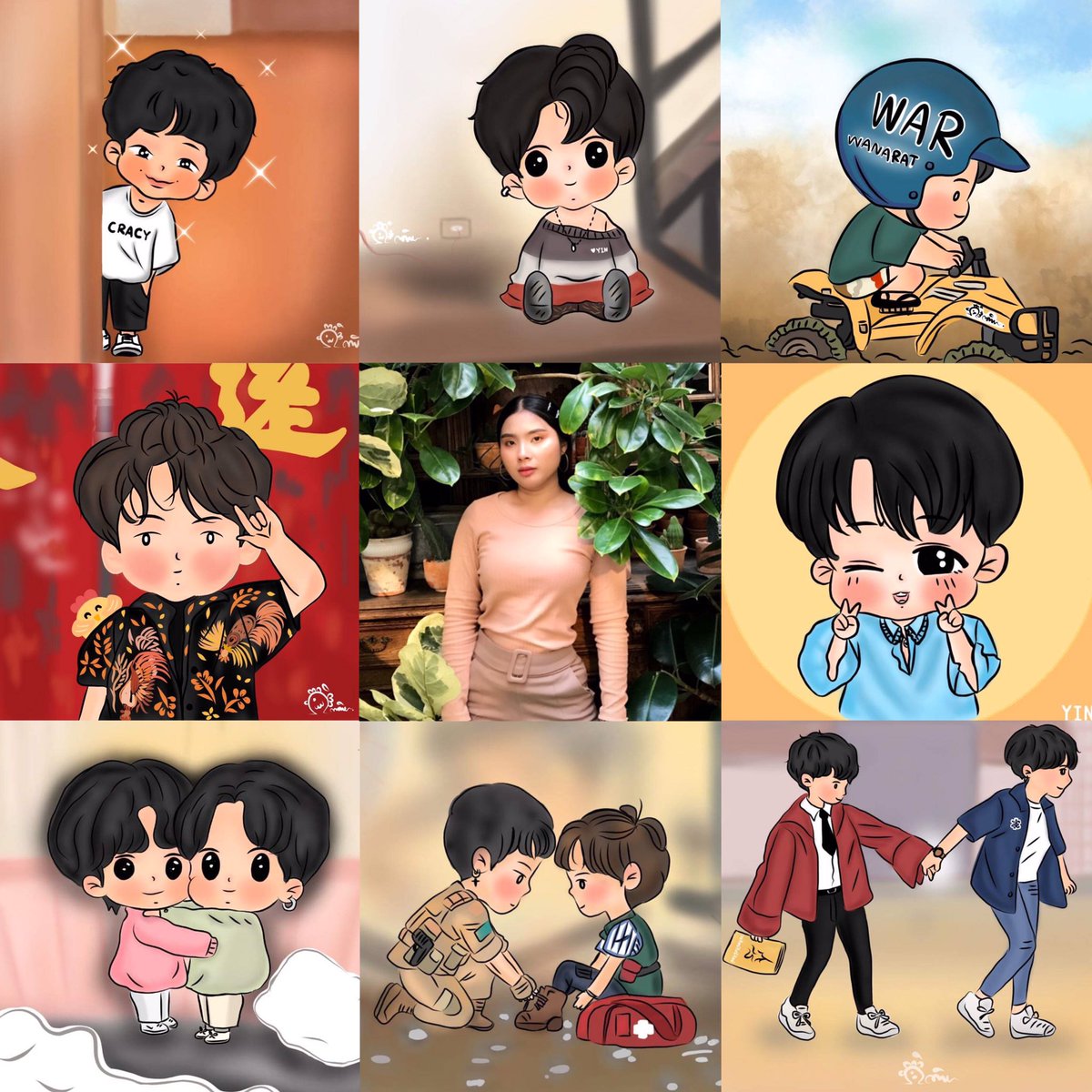 ด.ญ.กระปุก วาด กลรักรุ่นพี่ เกือบทุกวัน ช่วงหลังๆลายเส้น หล่อตามพี่วี และน้องมาสะ งงมาก 😬 #ยาย่าจะวาดกลรักรุ่นพี่วันละรูป #yinwarfanart #artvsartist2021