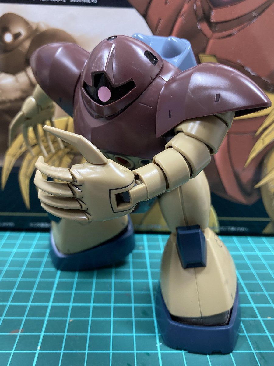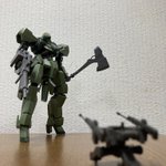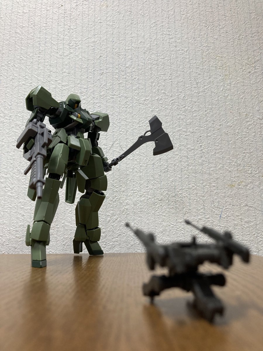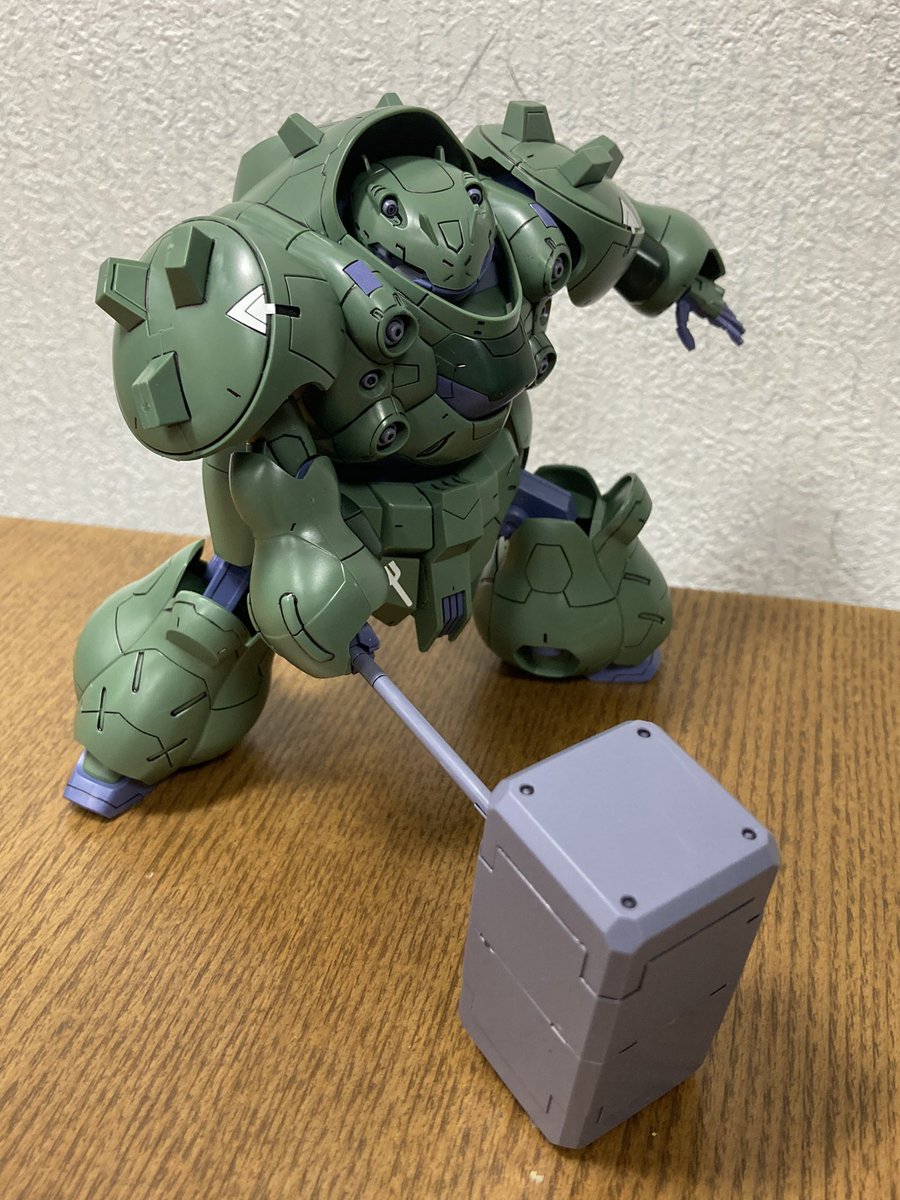 HGアヘッドスマルトロン完成しましたー ずんぐりしててラピュタのロボット兵を思い出しました() GNサブマシンガンの造形が好きなので他キットに流用できたらカッコいいんじゃないかな?(このキット単体でも充分カッコいいですが) #ガンプラ #ガンプラ好きと繋がりたい