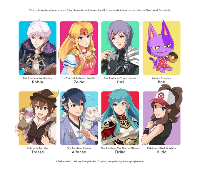 My #SixFanarts! I'll be making these into charms, and I'd like to offer you the chance to win a free custom charm commission (in the same style!) TO ENTER: - Comment with your fave of the eight! - One winner will receive that charm, PLUS their custom charm! - Closes 10th May!