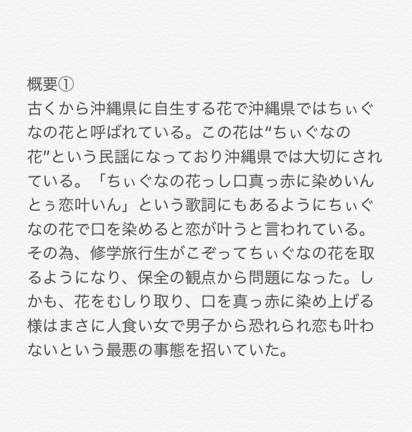 1 5 名称 ハレバス 学名 morbus venereus 誕生花 7月11日 花言葉 無責任な伝承 分布 沖縄県 サイズ感 15〜25cm #ガセ植物 #植物 #植物図鑑 #想像植物 #植物イラスト #イラスト #植物コラム #野草 #花 #花言葉 20/07/23 12:53