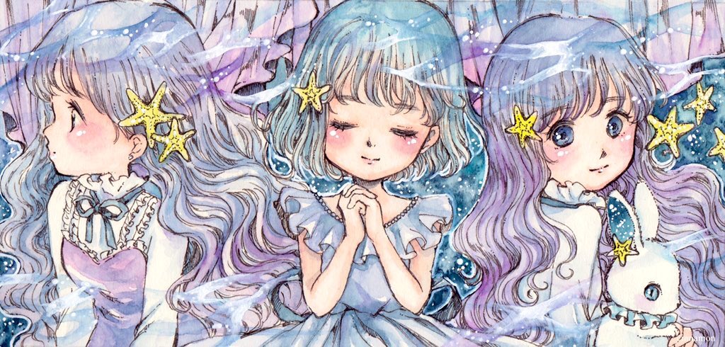 みんなでシェア企画展 @Lupopo_cafe 様 水彩でガールズイラストを制作しています🖌 少し先ですがGWは三年ぶりに幕張メッセで出展予定です🎉 4枚目、最近 #ファーストカット似顔絵 もはじめさせて頂きました。たくさんオーダーを頂き現在は受注ストップ中ですがこちらも頑張ります☺️ #水彩 #イラスト