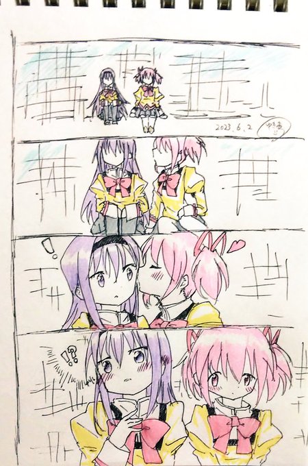 23 54 #魔法少女まどかマギカ #イラスト こんな感じの2人が好きです。 わちゃわちゃ💞 23/06/11 21:06