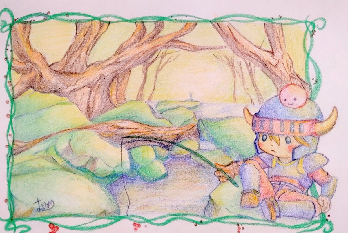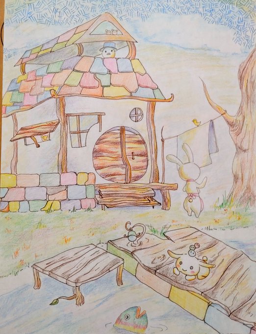 なりさんとのアナログ合作✨☺️ なりさんの線画に僕が色を塗らせて頂きました♪ 画材は色鉛筆です! タイトルはジャージ・オブ・ウェールズですっ!😁