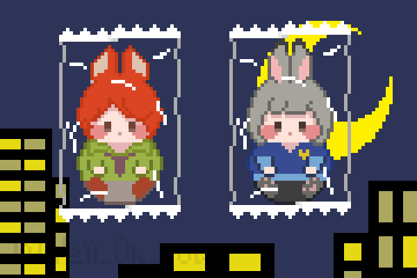 0 1 #pixelart #ドット絵 #픽셀아트 Packed Nick & Judy. 포장된 닉과 주디. 23/04/27 19:41