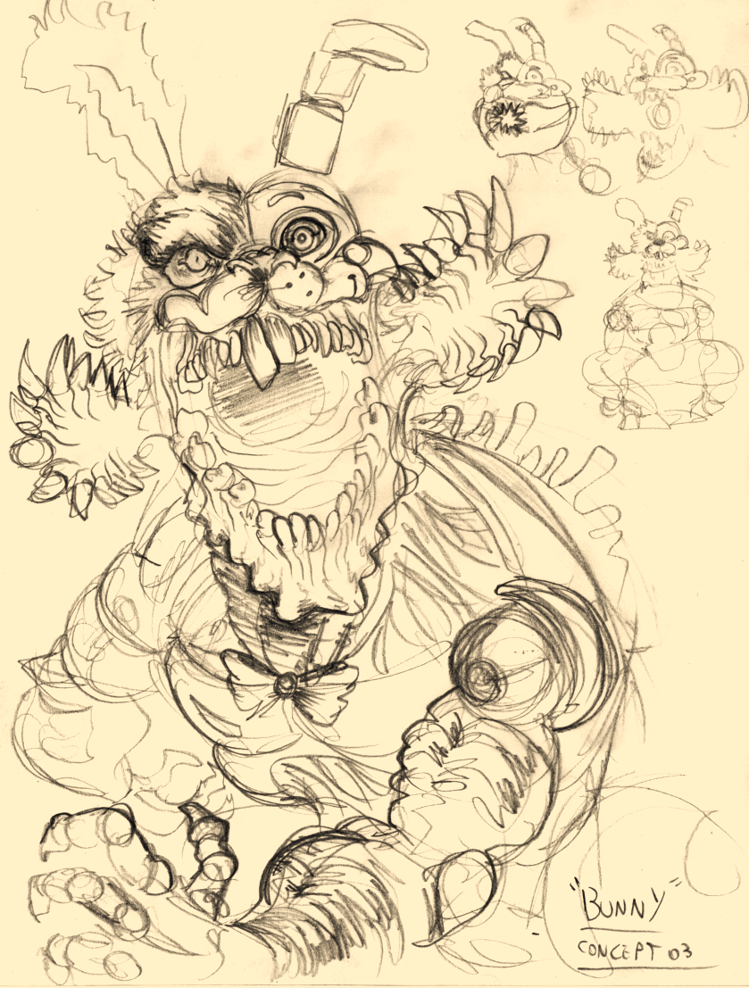 Some concept art for The Twisted Ones, if I ever get to do what I want to do with that book. Not at all inspired by another much more famous survival horror series that starts with an "R" and ends with an "esident Evil". #artistsontwitter #FNAF