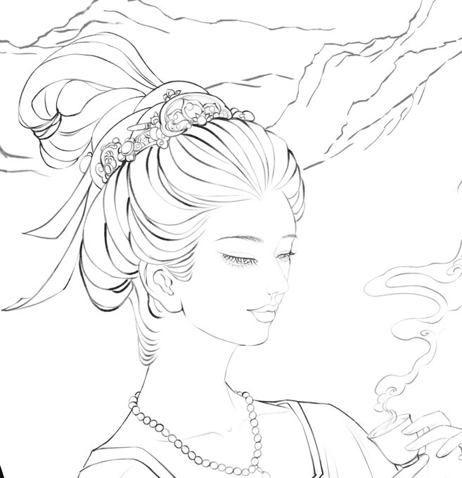 CG practice:工筆線画摹絵の作業練習 #cg #肖像画 #drawing #illustration #paint #procreate #sketch #graphicdesign #線画 #插图 #絵 #落書き #絵描きさんと繋がりたい #イラスト好きさんと繋がりたい #絵師さんと繋がりたい #イラスト