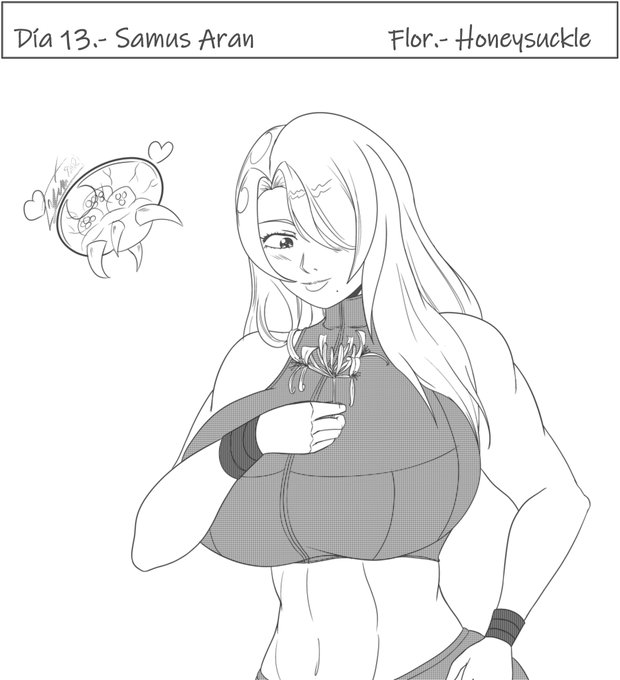 Día 13 Samus Aran y la Flor Honeysuckle @KenkuArt #Inktober #inktober2022 #Kentober #nekospromptlist #botanicalinspiration #Fanart #Metroid #Samus #samusaran