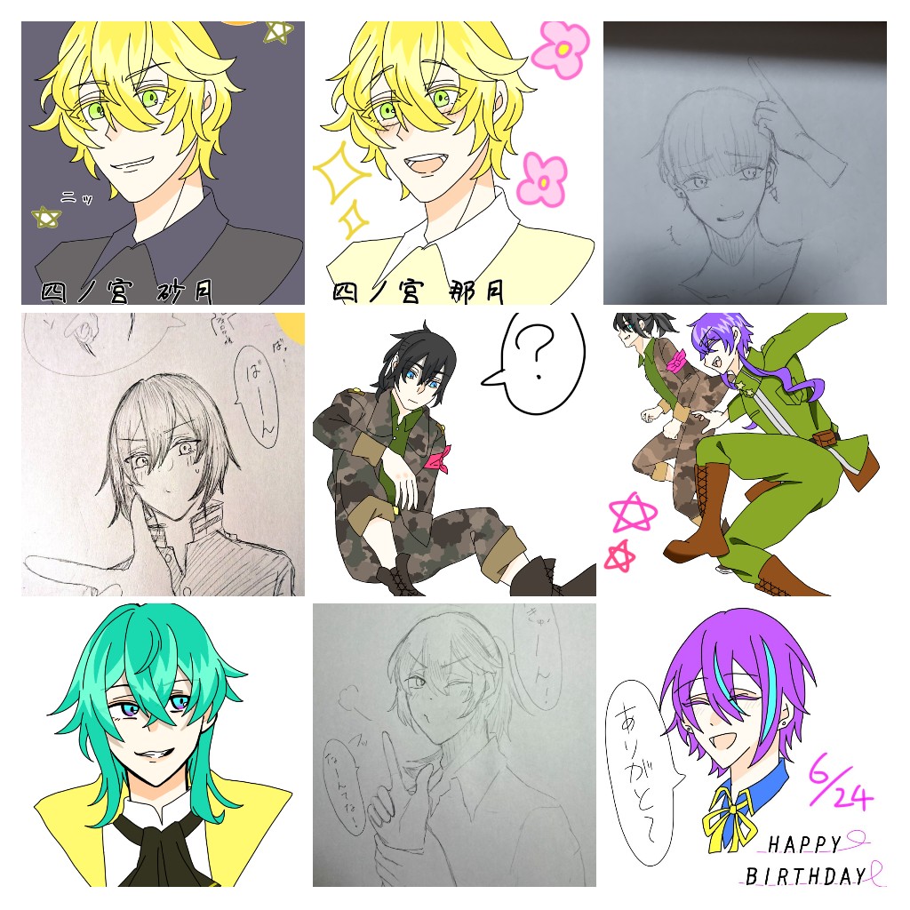 1014おめでとう記念絵が追いつかんから1週間の疲れを労ってくれるケンちゃんと急に全てが嫌になった(ry(再掲)を貼る!!!ついでに最新絵も貼っとく!!近いうちに載せる!!! #1014R_FA #1014は千銃士の日 #千銃士R #1014の日