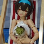 ガチャ「1/12 老舗喫茶店のおひとりパフェ」 メガミサイズなのですが、持たせるのが難しいです (マスキングテープで張り付けてあります) #メガミデバイス twitter.com/gachaxpompom…