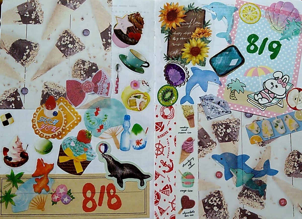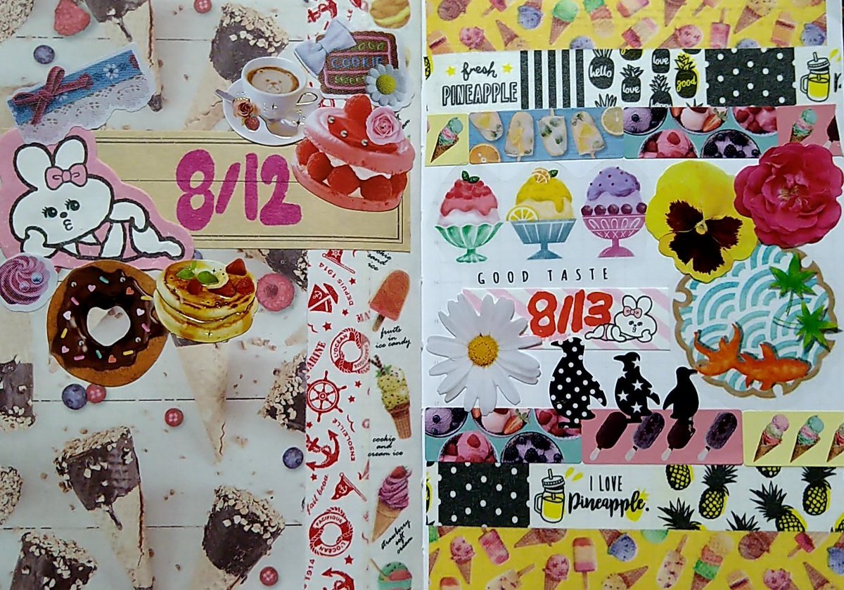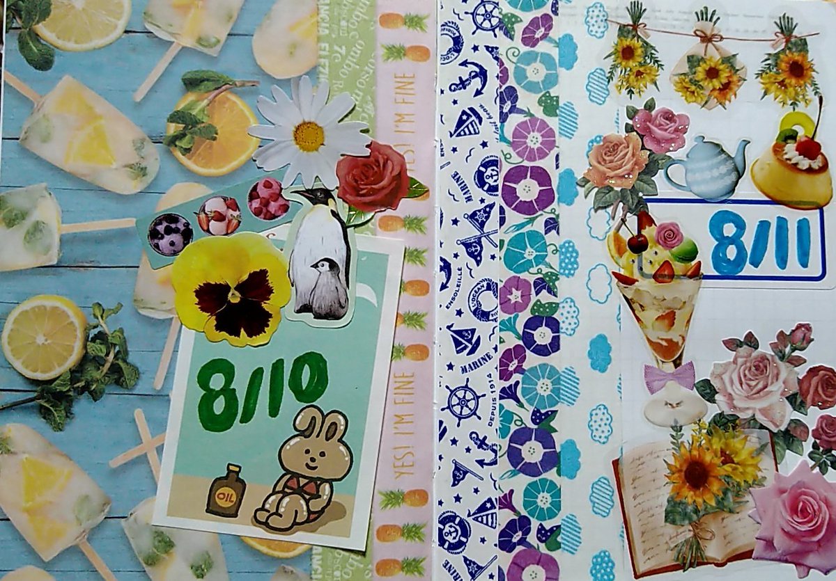 1/2イヤーノート日記📖 10/31、11/1🖋貼っただけの8/8〜13 11/1はちょっと感情高ぶりすぎちゃうのでもうこれ以上は諦める💦 #万年筆 #プレピー #色鉛筆 #マステ #シール #フレークシール #ふせん #デザインペーパー