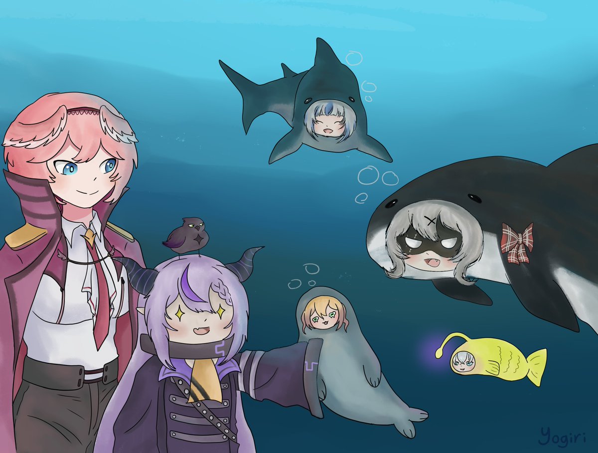 In the aquarium! #gawrt 🦈#さかまた飼育日記 #Luillust #Laplus_Artdesu #laplus_great #ねねアルバム 🦭#絵フブキ 🐠#holoX