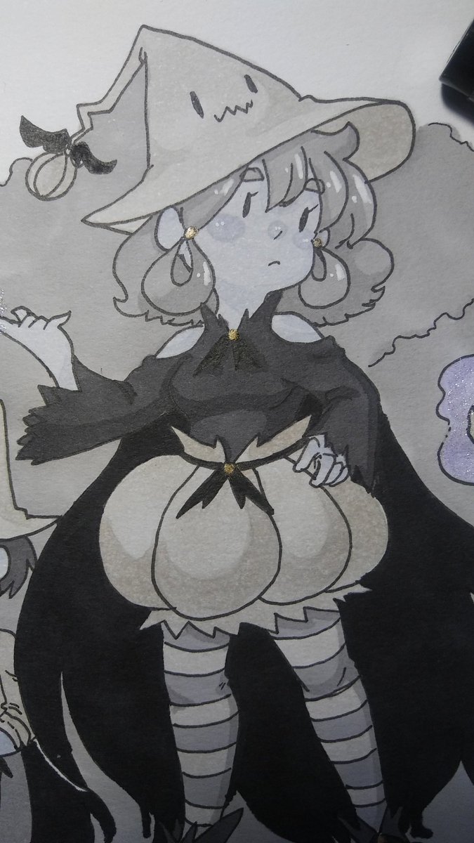 Day 4:Freeze The pumpkin witch "freezes" the long boi Slinky in his tracks (he just wanted some tea) #inktober #inktober2019 (Honestly I feel bad I just hid the characters behind a cape, my hands are a bit shaky)
