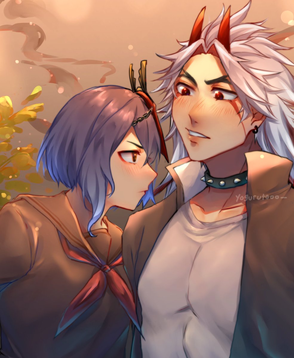 Sara and itto school outfit 😪😪💕 #saraitto #ittosara #sarakujou #KujouSara #aratakiitto #Itto #GenshinImapct #genshinimpactfanart #illustration
