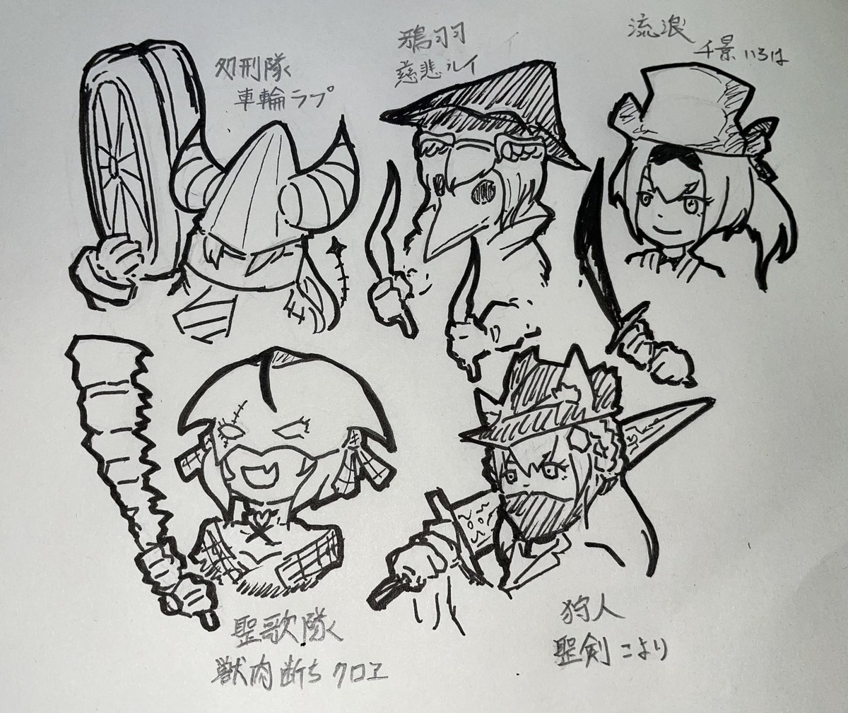 ホロックスが狩人になったら? こよりちゃんのブラボを見て妄想落書き。 #laplus_artdesu #Luillust #いろはにも絵を #こよりすけっち #さかまた飼育日記