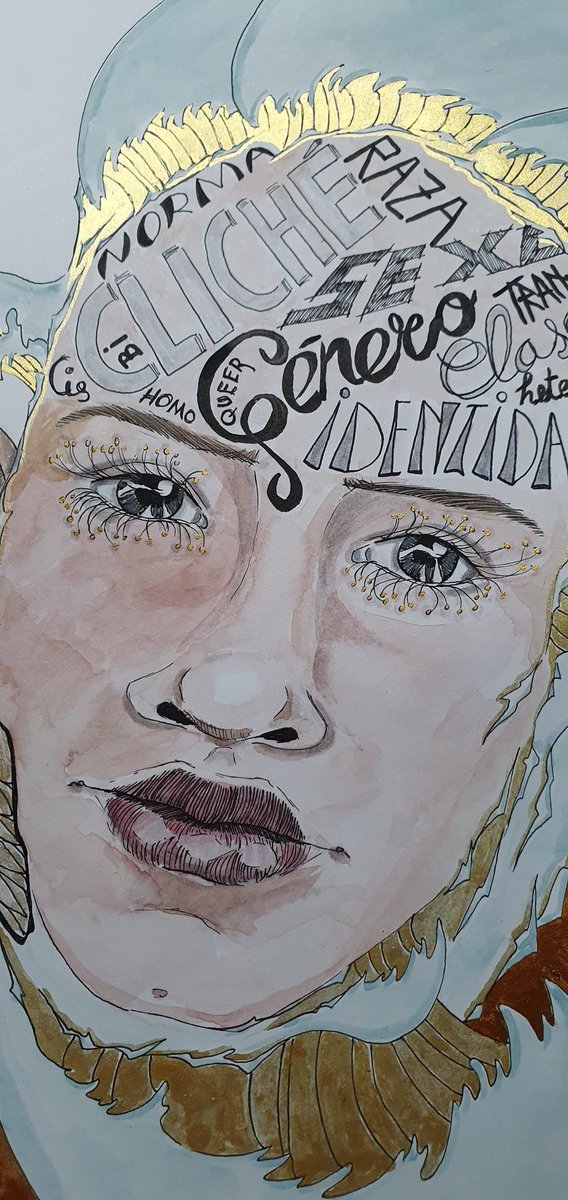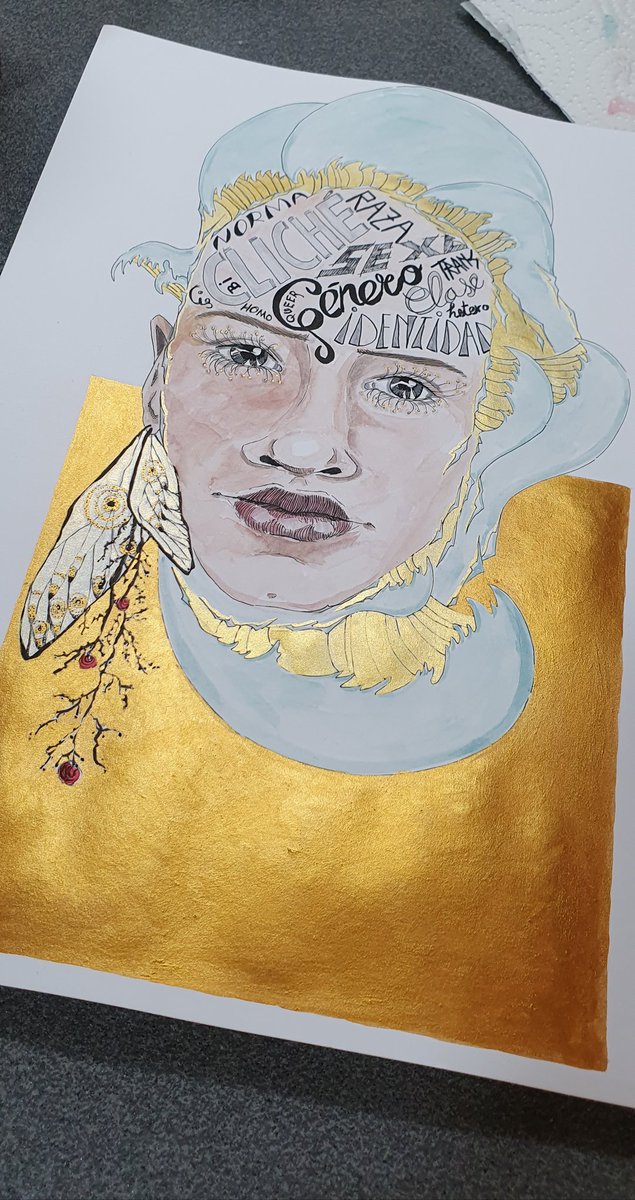 Con detalle y diferentes vistas de luz. Como ya he dicho en el vídeo, VENDO TODAS LAS LÁMINAS DE ESTE MES, así que si estáis interesad@s, escribidme por DM. ¿Compartís, por favor? #inktober2020 #Inktober #inktoberEs #tintubre #portrait #woman #acuarelas #dorado #Golden