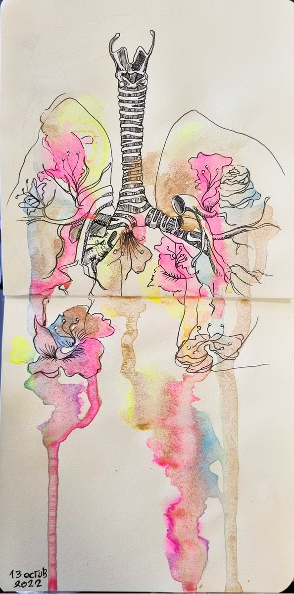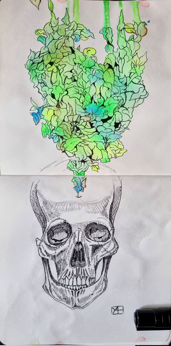 Hay días en que las flores que respiramos cuando amanece se diluyen a medida que pasan las horas y por la noche encharcan la respiración, que se hace pesada y difícil. Como pasadas las 24h ya era hoy, este es mi #inktober2022 día 13. #sketchbook
