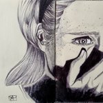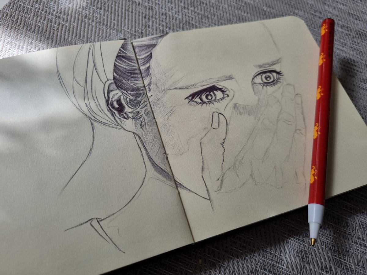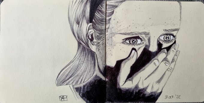 Anoche vi "Persona", de Bergman y estoy leyendo también "Senderos", de Liv Ullmann. Este fotograma me recordó a un pasaje del libro en que Ullmann habla de los detalles en su interpretación. Es mi #inktober2022, día 3. #inktober2022day3 #sketchbook