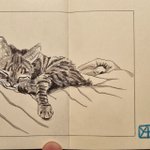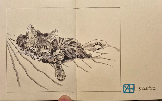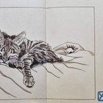 Día 5 del #inktober2022. Utinghami, el más pequeño de la casa. Con luz de casa o balance de blancos, pero a rotulador. #sketch #sketchbook #cats