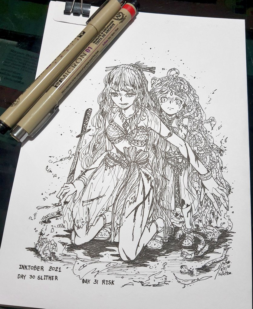 #inktober2020 ##day31crawl The last of 2020 inktober. Shuuuu.. ¿🤫 วาดจบด้วย จะร้องไห้อาร์ตบล็อคมาทั้งปี กลับไปวาดในคอมจะเป็นยังไงนี่ ปาดแต่หมึกระบายแต่สีน้ำมาเกือบสองเดือน ไว้ว่างๆค่อยมาลงสีต่อ