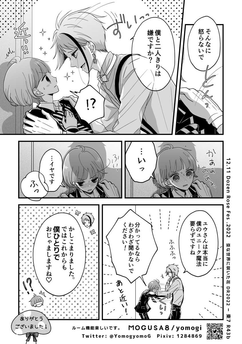 ■お品書き■ 12/11 Dozen Rose Fes .2022 歪な世界に咲いた花DR2022 ▶︎ジェイ監♀新刊サンプル🐬🌸 pixiv.net/artworks/10256… ▶︎相互さま&サークル参加者さまの取り置きを承ります。 ご希望の方はDMまでご連絡ください📩 ▶︎通販はとらのあなに委託予定です。 ↓ツリーに情報を繋げます。