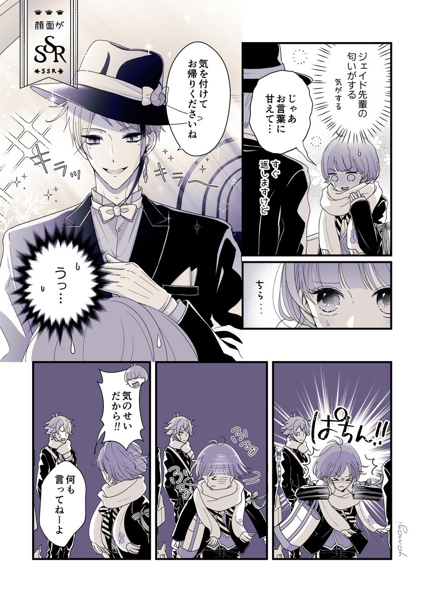 💐ℍ𝕒𝕡𝕡𝕪 𝔹𝕚𝕣𝕥𝕙𝕕𝕒𝕪💐 ジェイ監♀※顔あり男装監督生 テララブで展示した両片想い期🐬🌸のハピバマンガです。 素敵タグお借りします! #ウツボと小エビのお誕生日会2022 #twstプラス #twst_NL